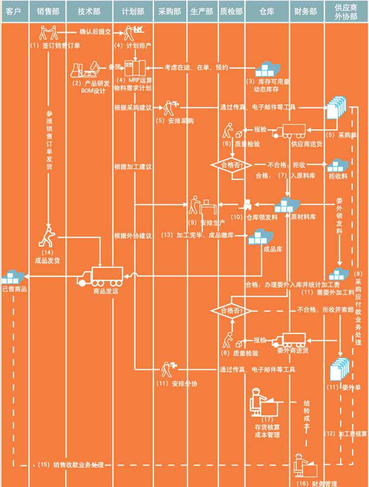 2、管理從委外訂單到委外領(lǐng)料、委外加工入庫、結(jié)算工費及耗料、付款及發(fā)票全線業(yè)務(wù)