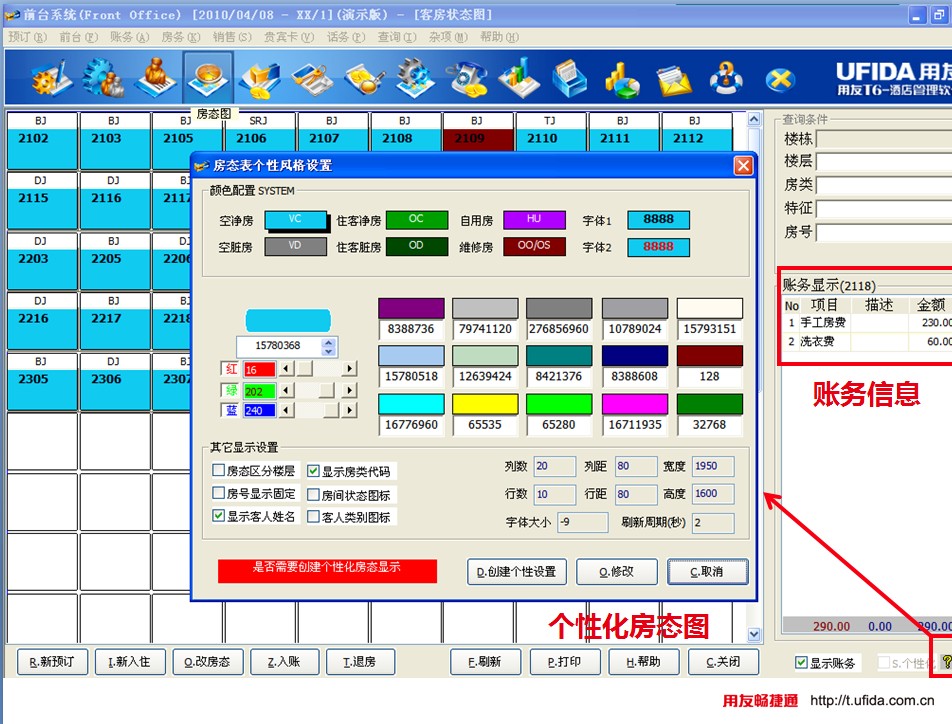 5、留言/特別注釋設(shè)置:實(shí)時(shí)房間狀態(tài)顯示